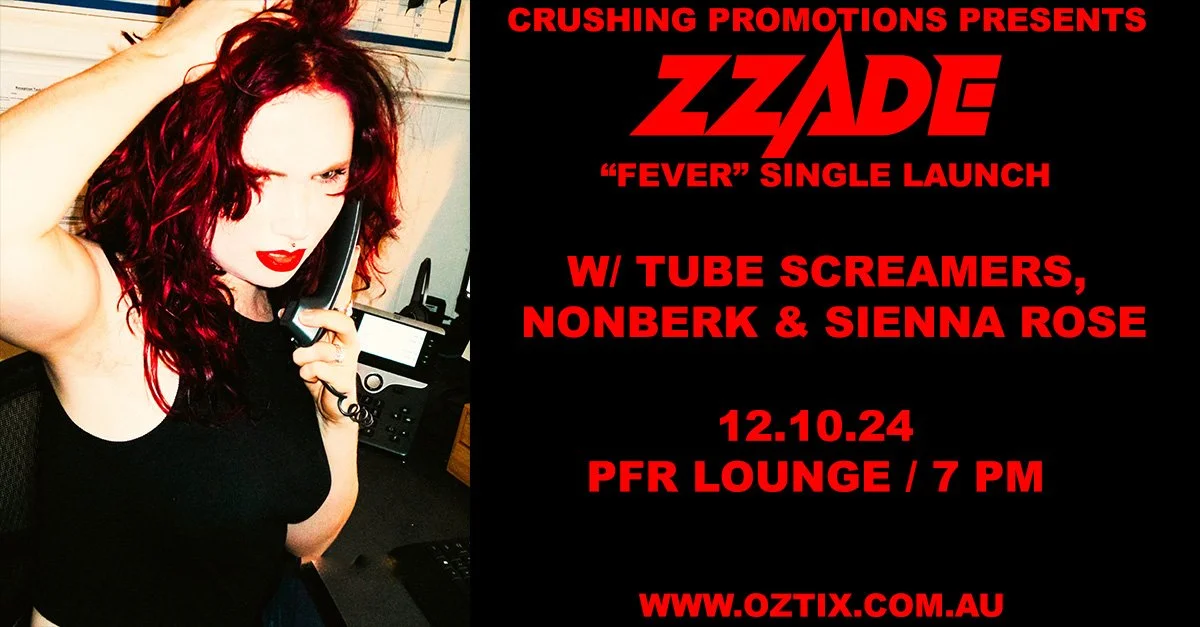 Now comes newest single “Fever”, a hard hitting, confrontational exposè on the pressures of navigating social climbing and networking in an ever evolving industry. ZZADE uses her signature satirical tongue in cheek lyricism with abrasive industrial sounds to create a three minute explosion of energy your ears will thank you for. ZZADE is set to headline her own show with the help of Crushing Promotions at P.F.R Lounge with support from Tube Screamers, Nonberk and Sienna Rose.